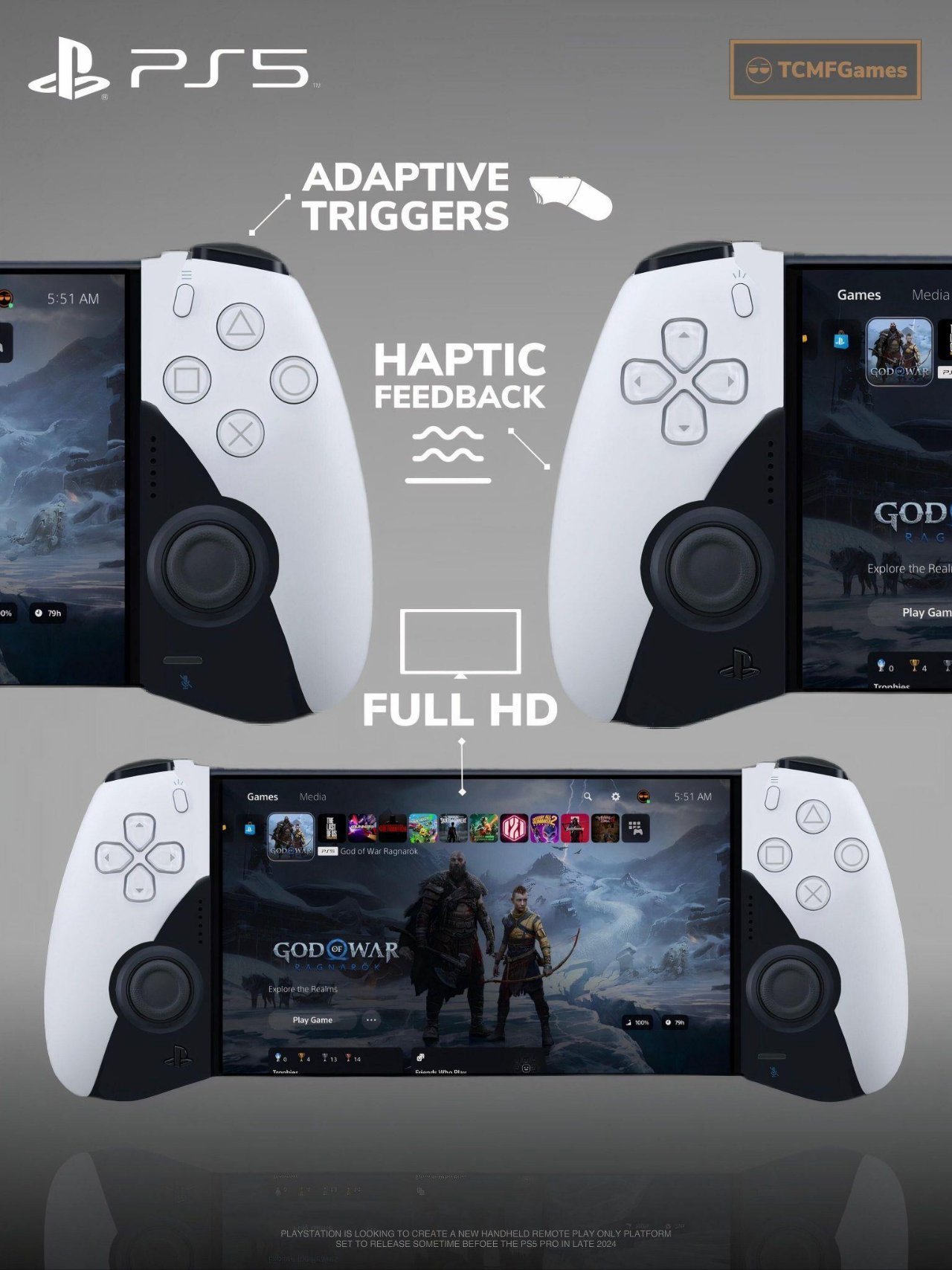 芯片由AMD设计,采用行业领先的3纳米技术制造,集成AI超分辨率功能(类似PSSR技术),可通过智能画质缩放提升游戏帧率与清晰度,同时降低能耗。配备与PS5相同的16GB内存,但通过RDNA 5架构提升计算单元效率,搭配4MB二级缓存与16MB MALL缓存(PS5/Pro未搭载),显著改善数据处理能力。受限于移动端限制,内存带宽为PS5的三分之一,但足以流畅运行优化后的PS5游戏。15W功耗设计兼顾性能与续航需求,相比Steam Deck等竞品更省电。索尼近期为PS5新增的“低功耗模式”被曝用于模拟掌机性能调校,为新硬件铺路。